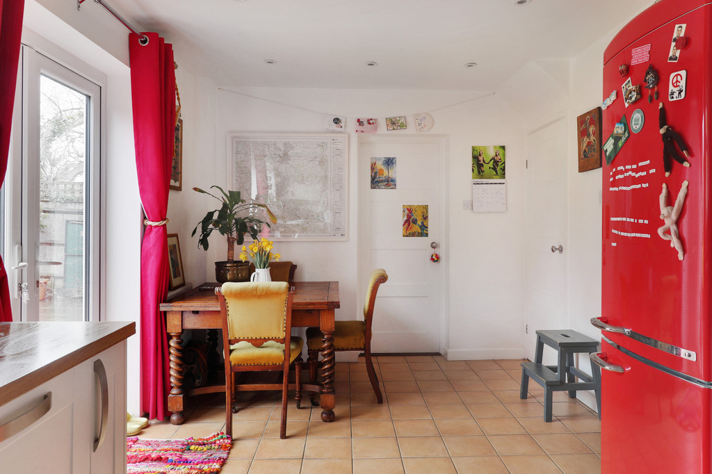 Useful built-in understairs cupboard and ample room for a dining table.