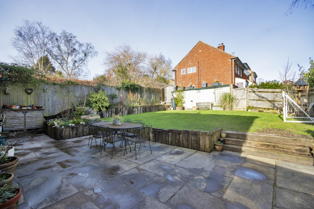 The rear garden has been landscaped with a large patio promoting in and out living, landscaped with vertical railway sleepers, the remainder of the garden is laid to lawn with raised borders to one side with matching vertical railway sleepers.