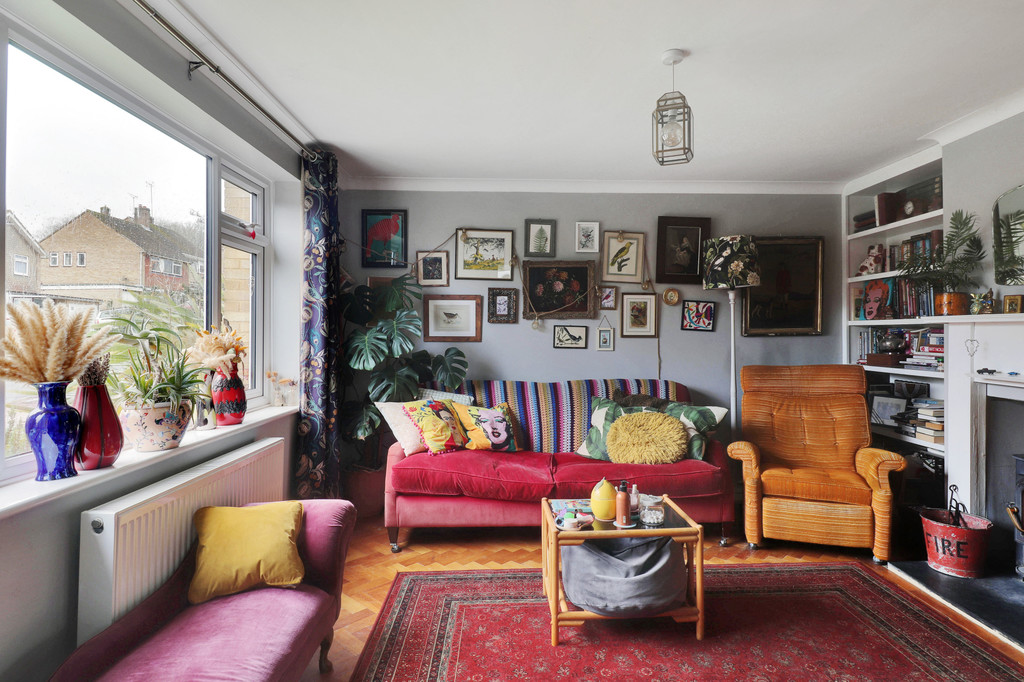 - Beautifully light sitting room, south facing window, fireplace with wood burning stove and shelving.