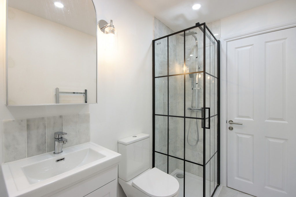 - Bathroom, bath with shower attachment, separate shower cubicle, washbasin, WC, towel radiator.