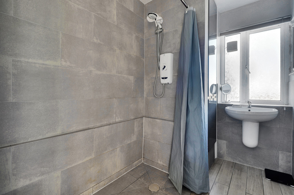 - Shower room with walk-in shower cubicle and washbasin, separate WC.