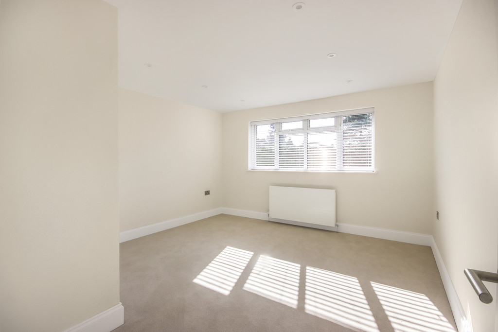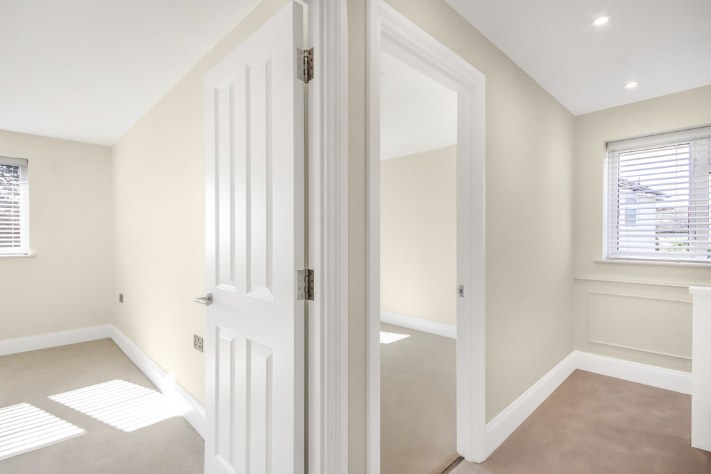 Double bedroom 3 with window to the front and built in deep wardrobe cupboard and recessed lighting.