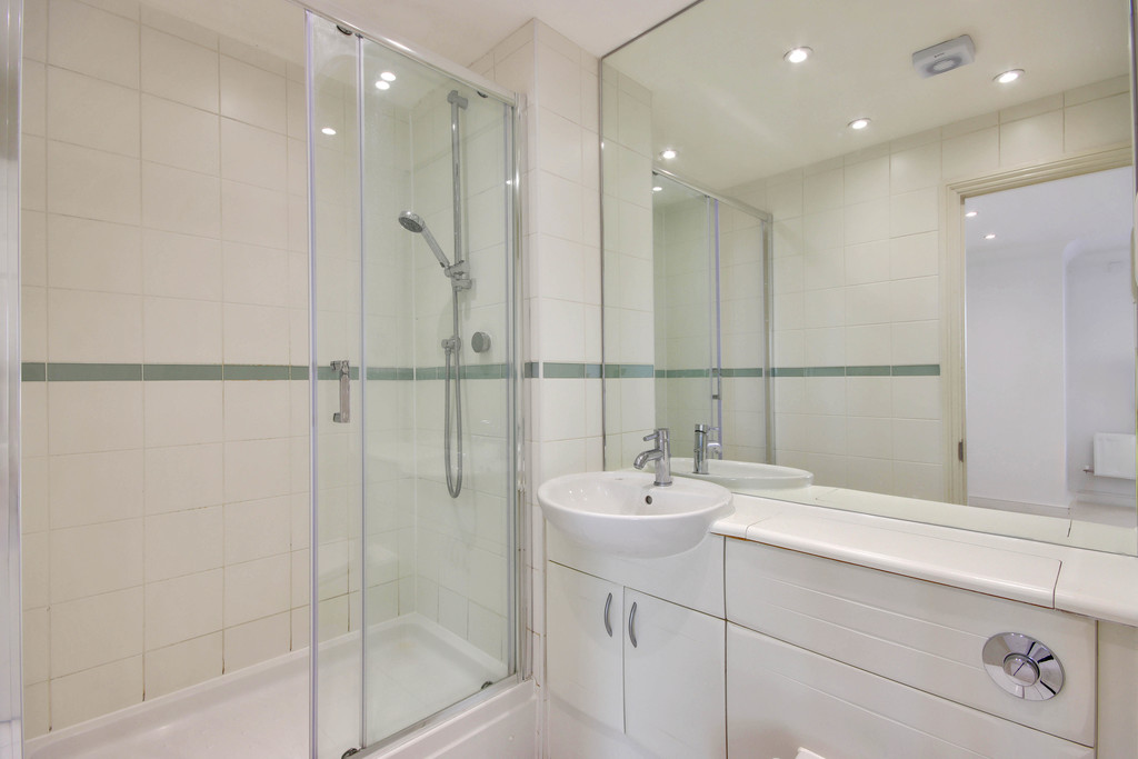 Principal bedroom is fitted with full width range of wardrobes, window to the front with slatted blinds , coved ceiling and recessed ceiling lights, ensuite shower room with walk in shower cubicle, washbasin with cupboards beneath, low level WC with hidden cistern, fully tiled walls and floors, plus large, fitted mirror.
